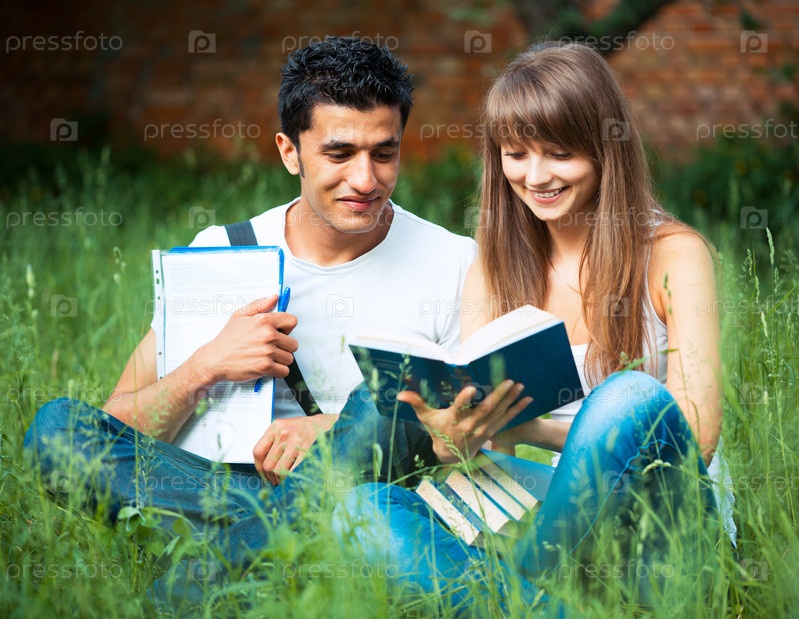 Студенты в парке с книгой