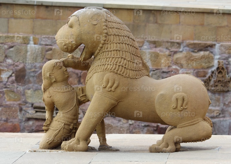 Каменные скульптуры в индуистском храме в Каджурахо, Индия