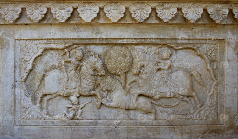 Резный рельеф на Gatore Ki Chhatriyan в Джайпуре, штат Раджастан, Индия