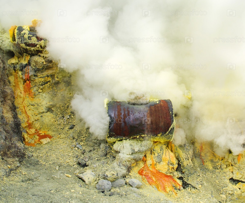 Добыча серы из кратера Кавах Иджен, Индонезия