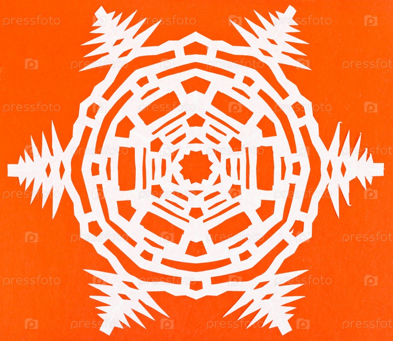Белая снежинка на оранжевой бумаге
