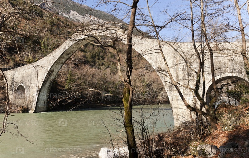 Древний, исторический каменный мост Плакас (Tzoumerka, Греция)