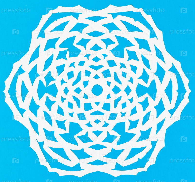 Белая снежинка на голубой бумаге