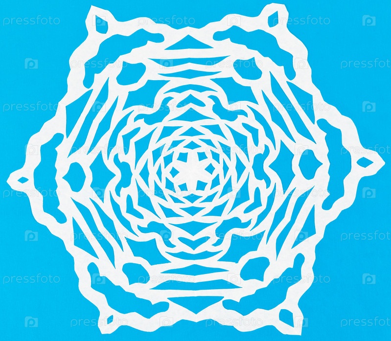 Белая снежинка на голубой бумаге