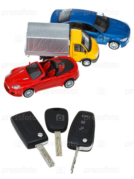 Три автомобильных ключа и модели автомобилей