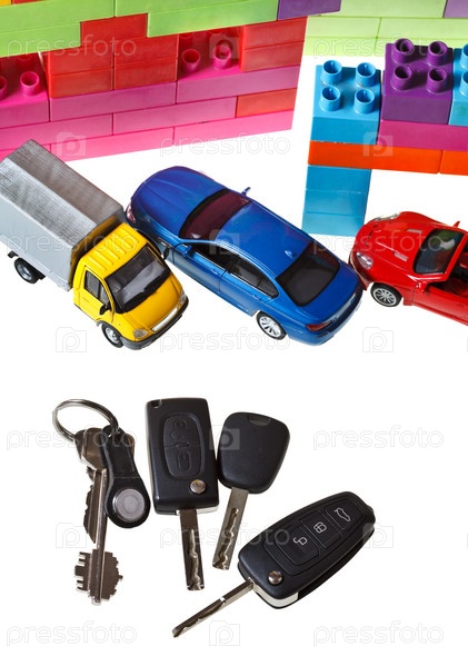 Игрушечные автомобили, дом и ключи
