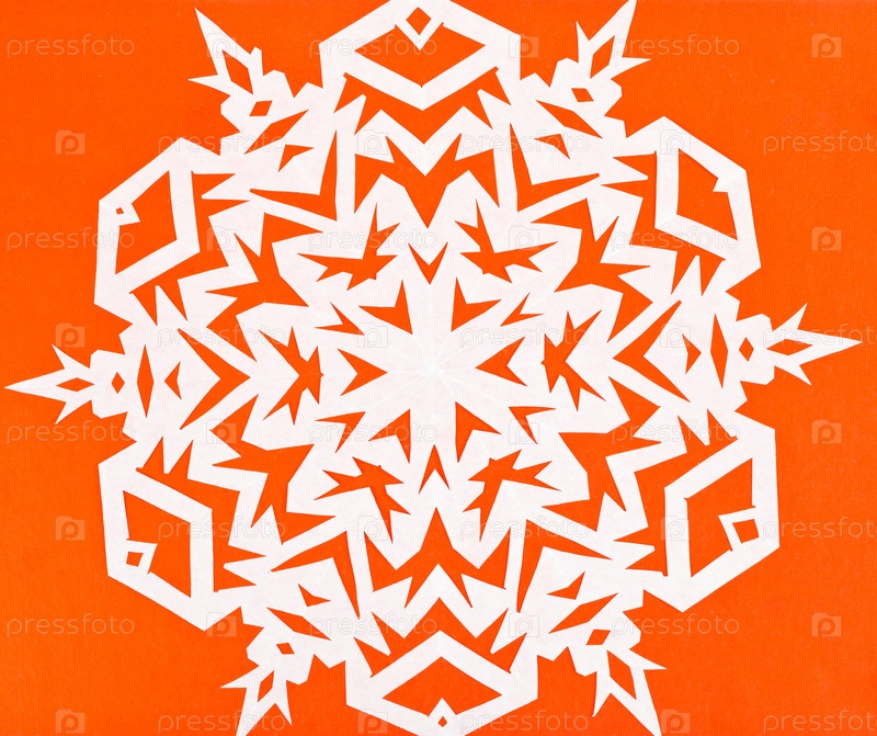 Белая снежинка на оранжевой бумаге