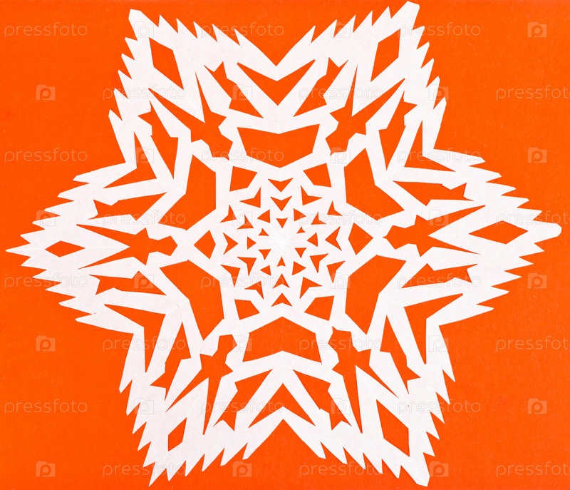 Белая снежинка на оранжевой бумаге