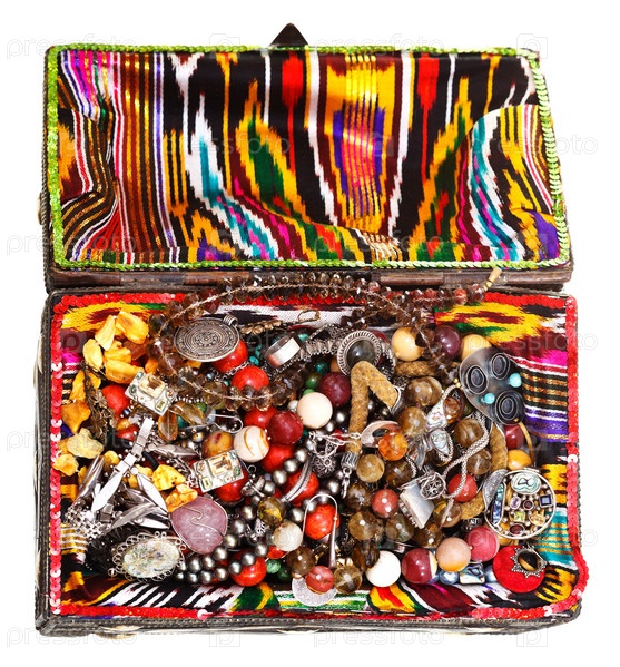 Антикварные ювелирные изделия в старом сундуке