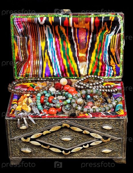 Антикварные ювелирные изделия в старом сундуке