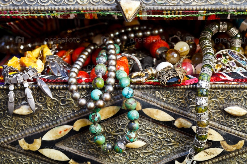 Антикварные ювелирные изделия в древнем сундуке