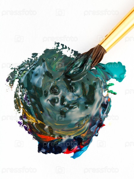 Кисть мешает разноцветную акварель
