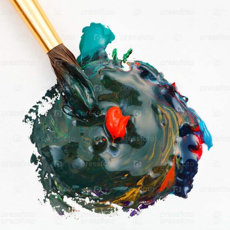Кисть мешает разноцветную акварель