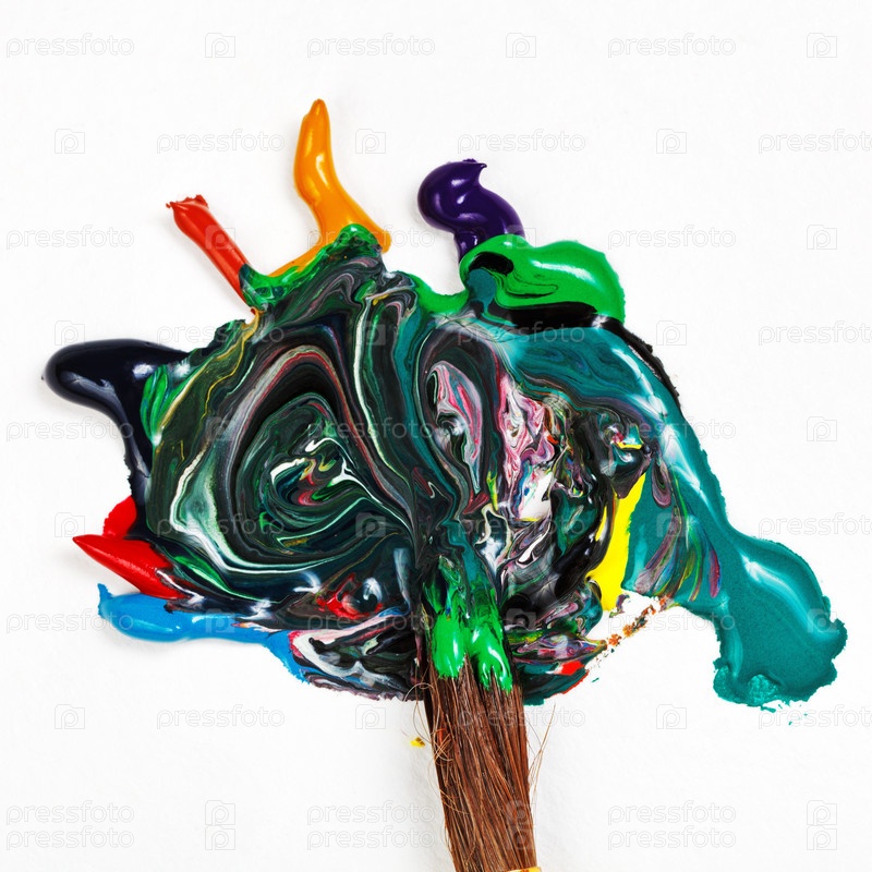 Кисть мешает разноцветную акварель