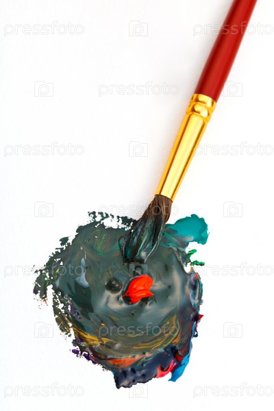 Кисть мешает разноцветную акварель