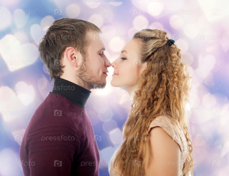Влюбленные мужчина и женщина в профиль