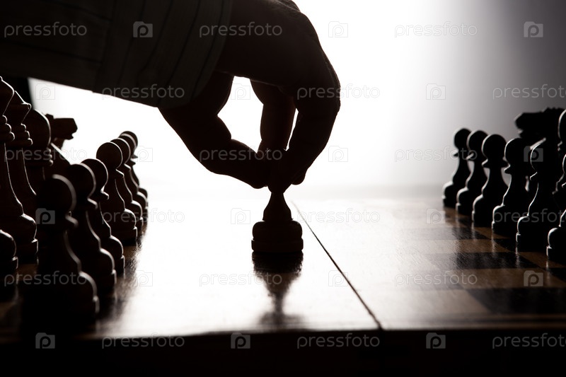 Человек делает ход шахматной фигурой