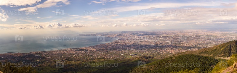 Панорама Неаполя. Вид с горы Везувий. Италия