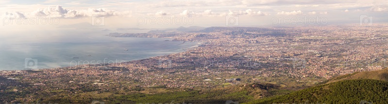 Панорама Неаполя. Вид с горы Везувий. Италия