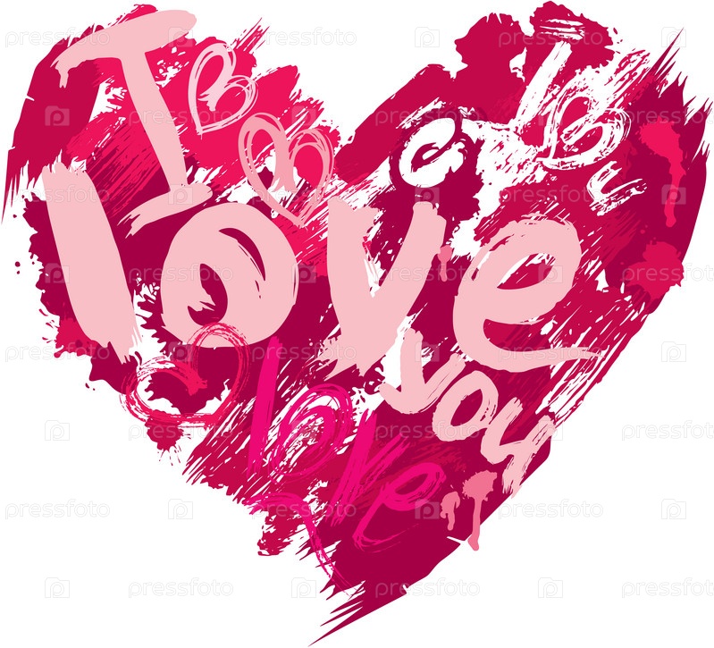 Форма сердца из мазков кистью и фраз "Я люблю тебя"