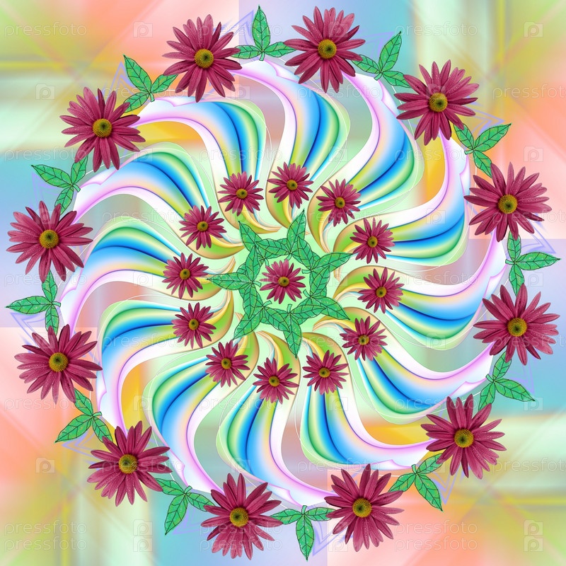 Декоративная мандала с цветами герберы мо спиралями
