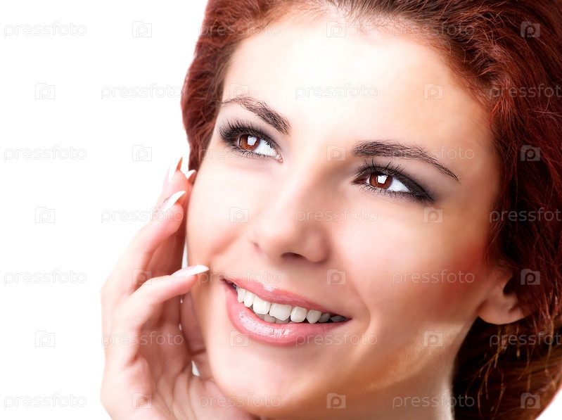 Лицо красивой девушки на белом фоне. Красота и уход за телом