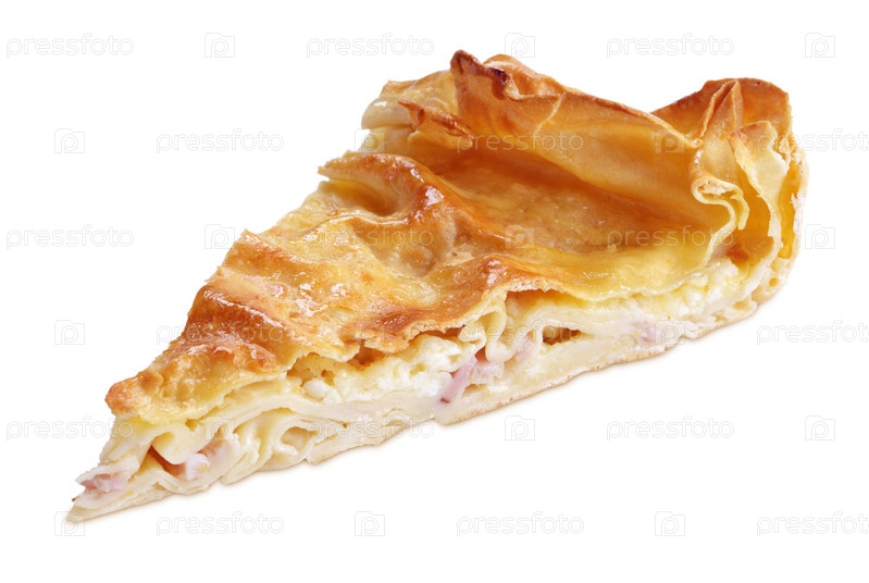 Кусок пирога с творогом и ветчиной