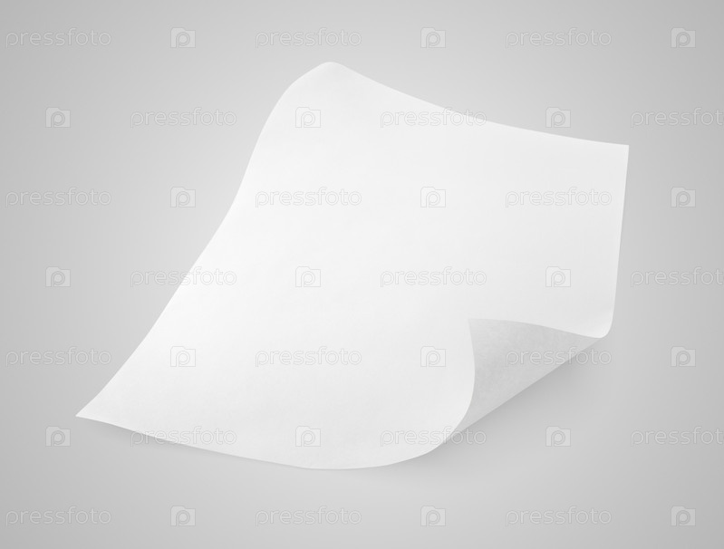 Чистый лист белой бумаги на сером фоне