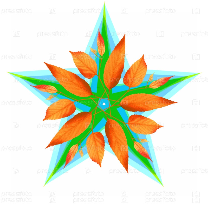 Декоративная звезда с листьями на белом фоне