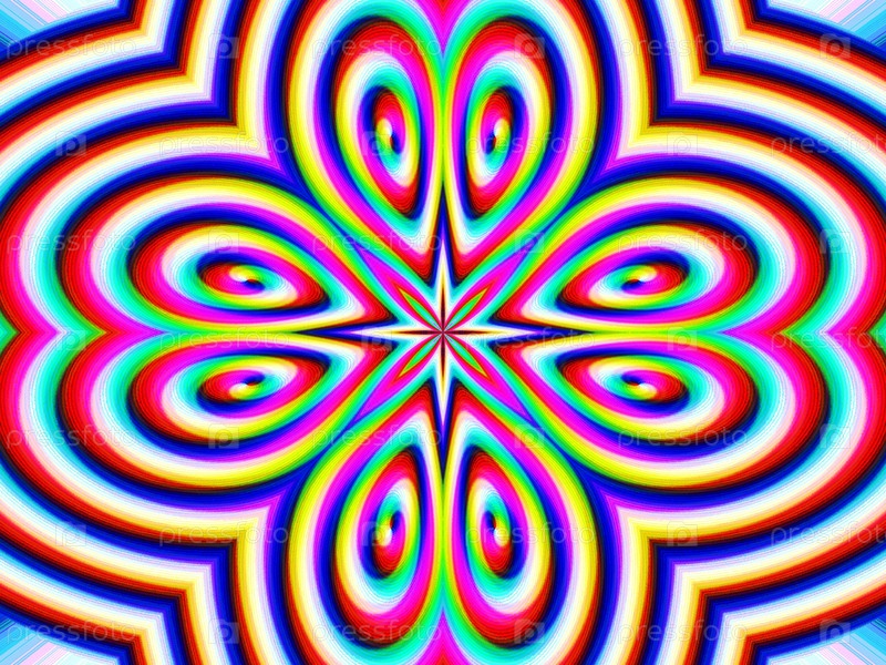Абстрактный орнамент со спиралями в ярких психоделических цветаз