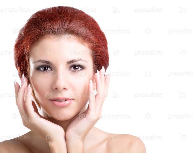Лицо красивой девушки на белом фоне. Красота и уход за телом