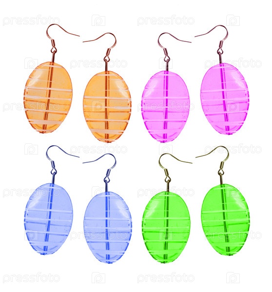 Серьги из стекла на белом фоне. Четыре пары