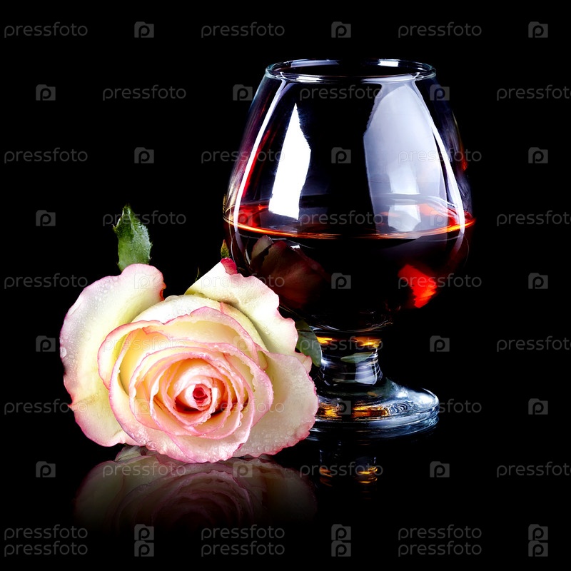 Бокал с алкоголем и роза