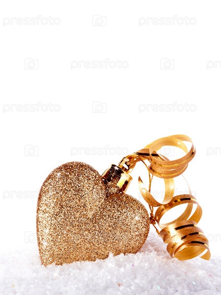 Сердце с золотой лентой на снегу