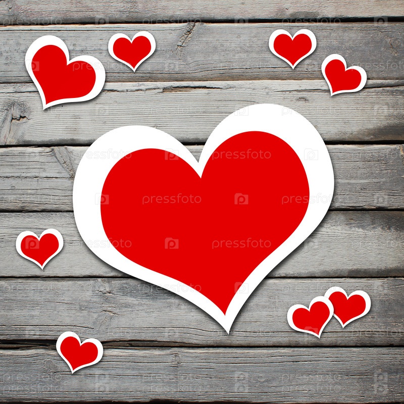 Красные сердечки на деревянной поверхности