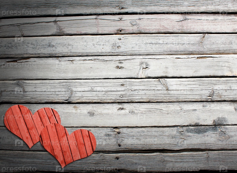 Два сердца на деревянной поверхности
