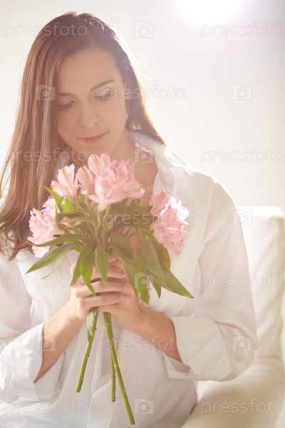 Женщина нюхает цветы