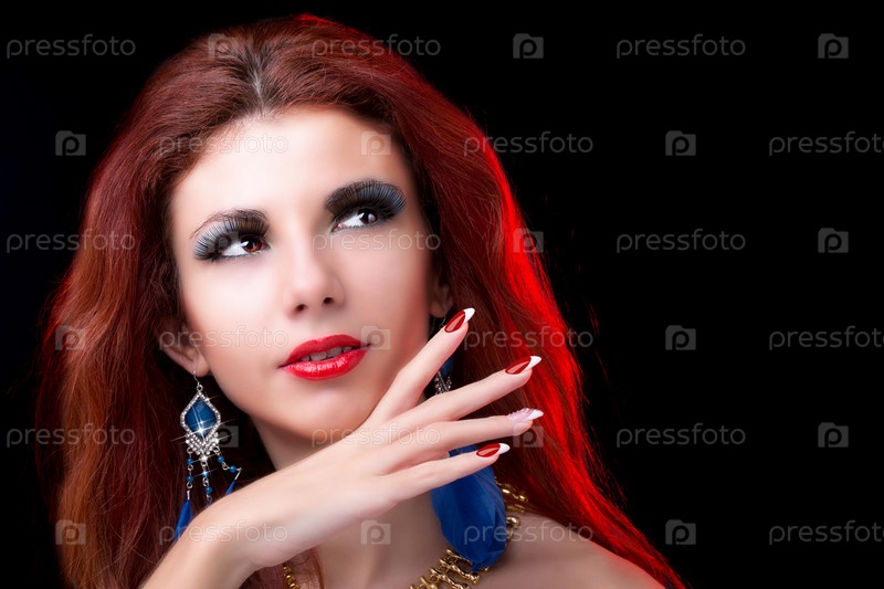 Портрет красивой девушки с рыжими волосами на черном фоне