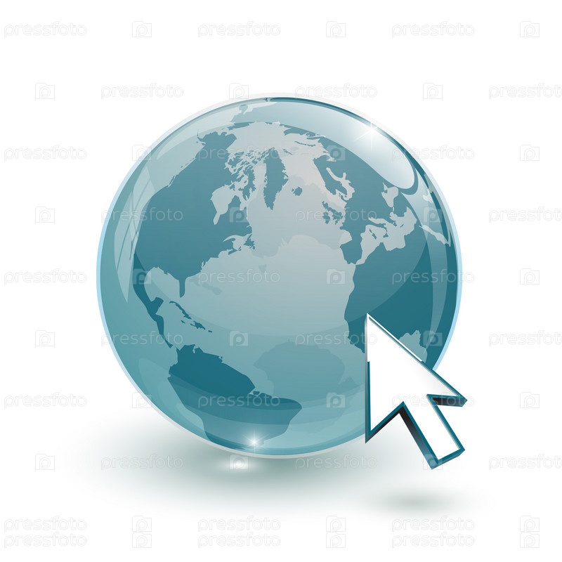 Синий стеклянный глобус и курсор