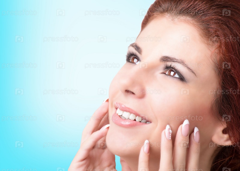 Красивое лицо влюбленной молодой девушки с улыбкой
