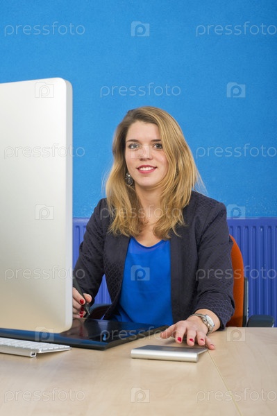 Молодая женщина за компьютером