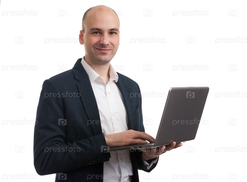 Привлекательный молодой деловой мужчина с ноутбуком