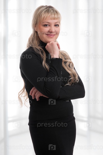 Портрет женщины блондинки на белом фоне