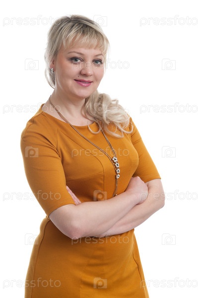 Портрет женщины блондинки на белом фоне