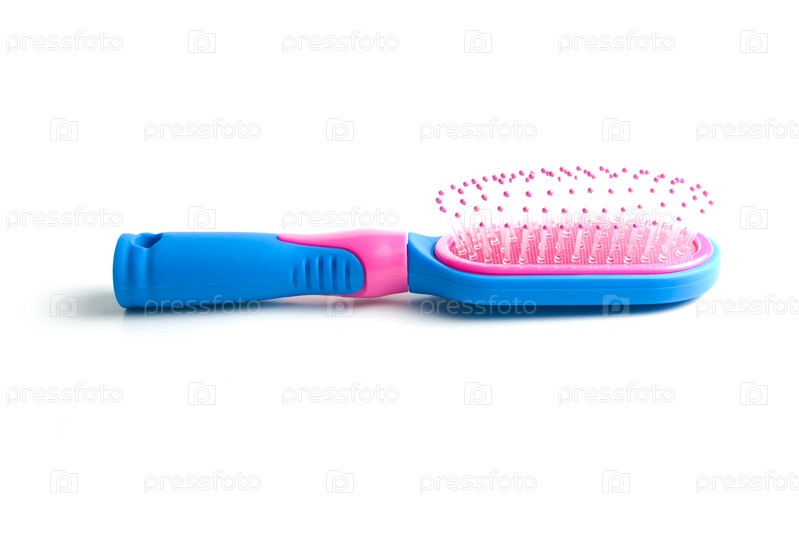 Синяя расческа на белом фоне