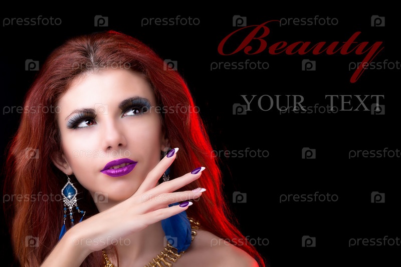 Портрет красивой девушки с рыжими волосами на черном фоне