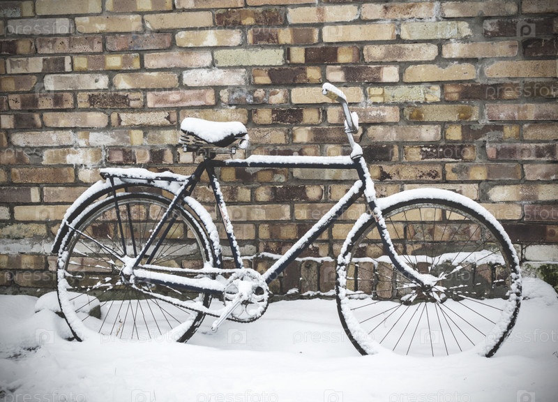 Старый велосипед под снегом