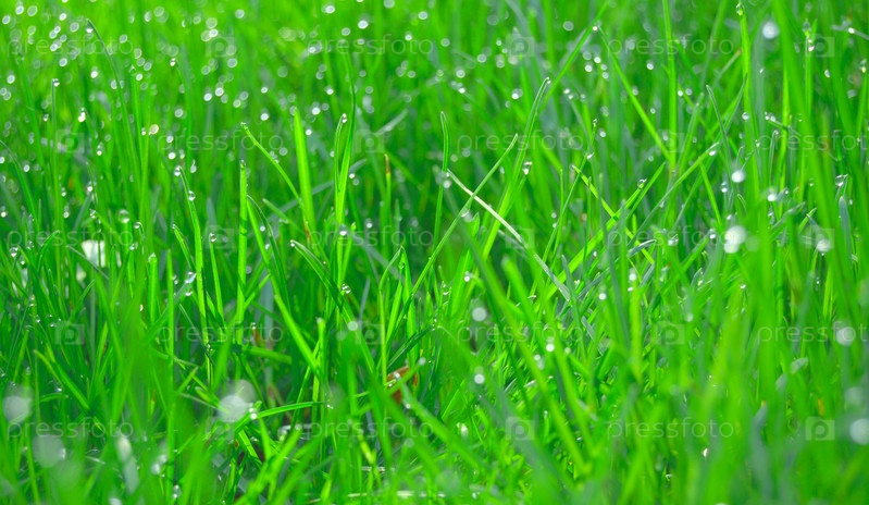Молодая зеленая трава с капельками росы