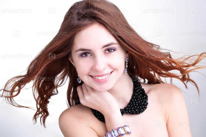 Девушка с развивающимися длинными каштановыми волосами