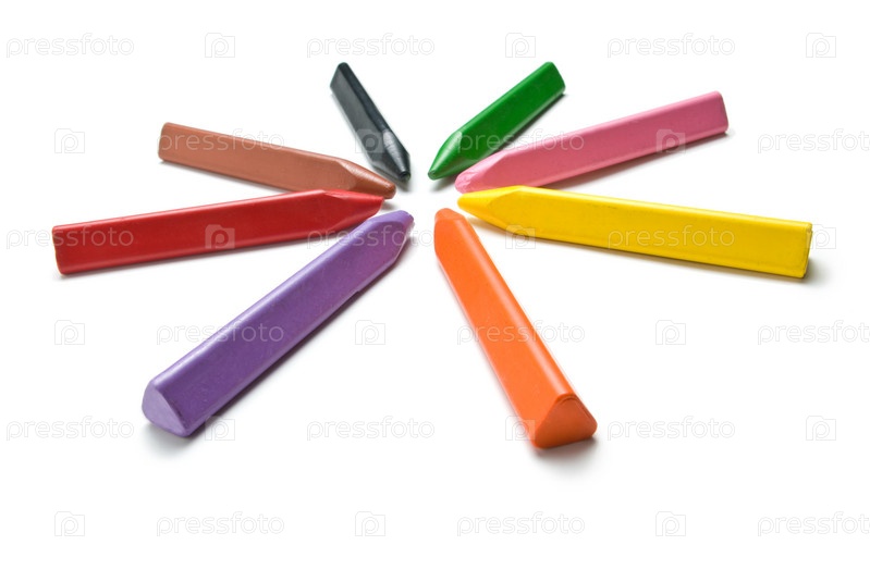 Разноцветные мелки на белом фоне